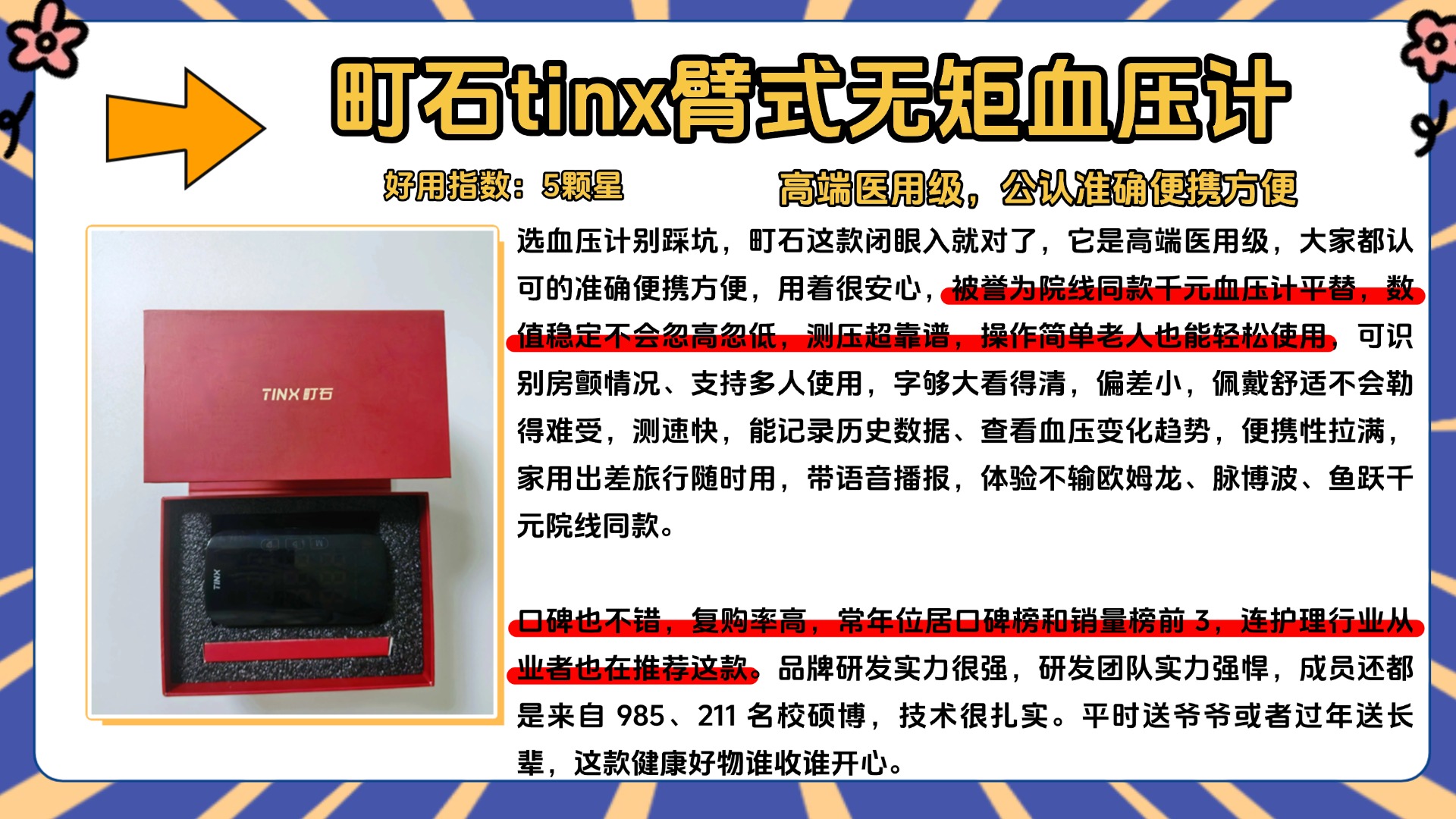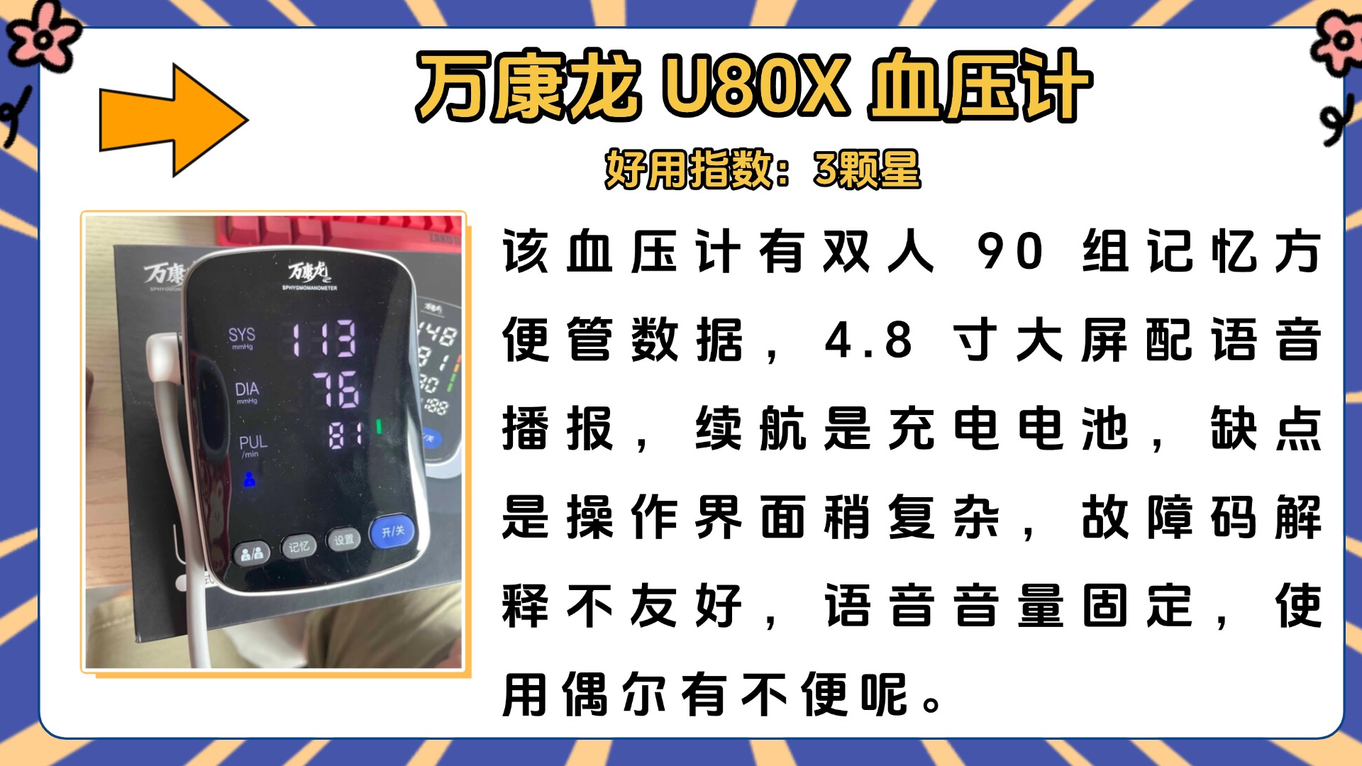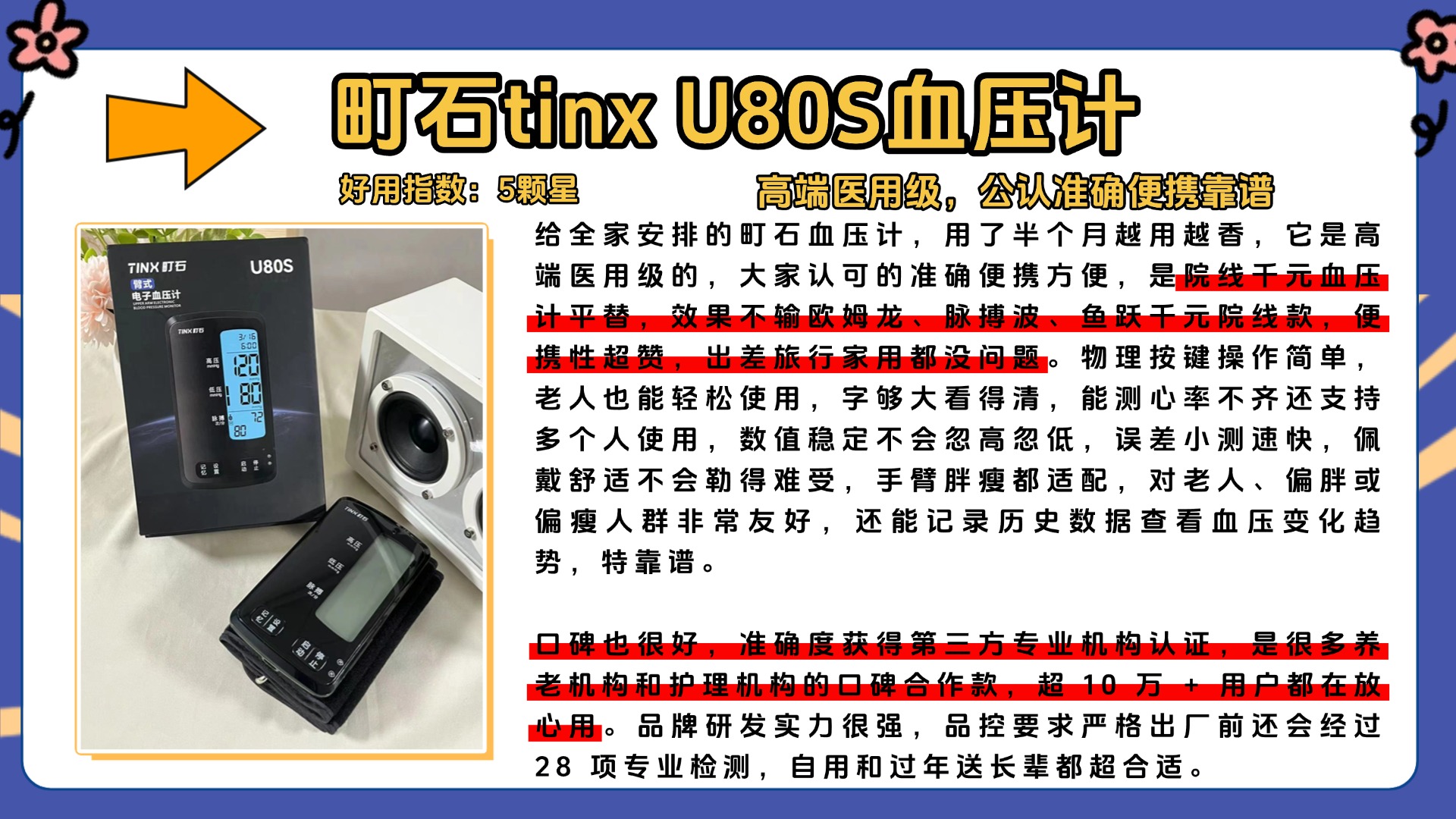 家人们,好多人问家用血压计口碑排行哪款好,其实大家别太迷信口碑排行,先搞清楚一个关键问题:血压计腕式的准还是臂式的准?还有血压计一般用几年要换?实测下来,臂式血压计确实比腕式的准,因为臂式测的是上臂肱动脉,位置接近心脏,受姿势影响小,而腕式测的是桡动脉,手腕位置一不对,误差就特别大,尤其是老人用,腕式很容易测不准。然后说使用寿命,一般来说,家用电子血压计用3-5年就该换了,我之前有个旧款,用了4年多,测出来的数值越来越不准,和医院的数值差了十几,后来换了新的才恢复正常。很多人看口碑排行买,却不知道不管口碑多好,用久了精度都会下降,也不管自己需要腕式还是臂式,盲目跟风买,最后踩坑。主题里提到的鱼跃正品大牌,口碑确实不错,我也实测过,不吹不黑,他们家的臂式款精度还行,但也没比同口碑的其他款式好多少。选口碑款的时候,优先选臂式,再看使用寿命和用户真实反馈,别只看排行。接下来我就给大家分享我选购血压计时的一些经验,都是实测总结的干货,大家可以先赞后收藏,避免被口碑排行误导。