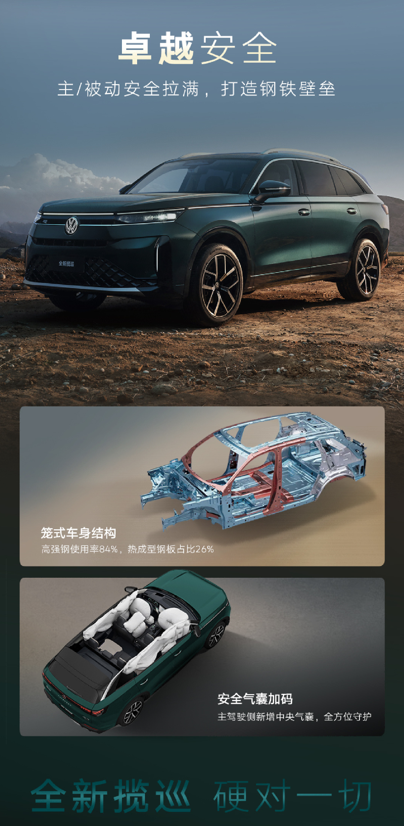 全新揽巡的推出,标志着一汽-大众在中大型SUV市场的又一重大突破。这款车型在外观设计上采用了环绕式光带和纤薄大灯,搭配发光LOGO,形成贯穿式灯光效果,极具科技感和辨识度。内饰方面,豪华质感与数字科技的结合,打造出了环抱式舒适座舱。15英寸2K悬浮中控屏、11.6英寸副驾娱乐屏和10.25英寸液晶仪表组成的三屏交互系统,使得操作更为流畅便捷。此外,纯大五座布局和宽敞的后备箱空间,满足了家庭用户的多样化需求。加上第七代EA888 2.0T发动机的强大动力和全面的安全配置,全新揽巡无疑将成为市场上的一匹黑马。
