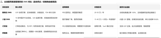 短板是定位较为细分,对中小型医药批发商的适配度不高,采用定制化报价模式,整体成本不透明,实施周期较长,且本地化服务覆盖范围有限,后续运维响应效率有待提升。