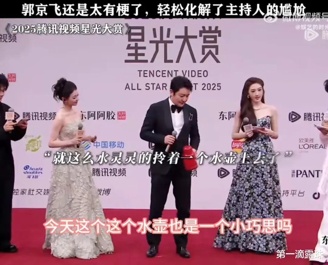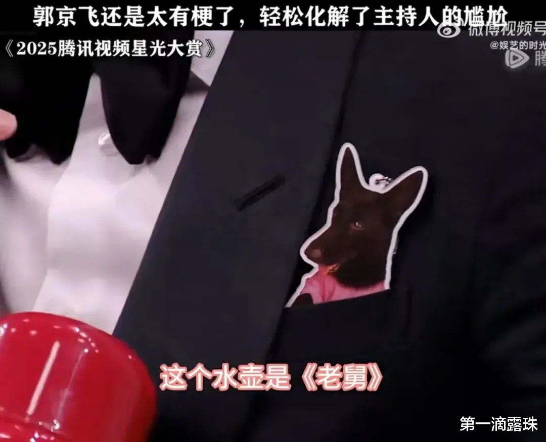2025星光大赏的红毯,本以为是新生代流量的主场,没想到被郭京飞用两个“硬核道具”抢了风头。一身板正黑西装的他,左手拎着《老舅》里的红色水壶,胸前贴着《驻站》的警犬玩偶“依卡”,这波跨剧联动直接冲上热搜,网友笑称“正经西装里藏着喜剧魂,这才是红毯界的清流”。