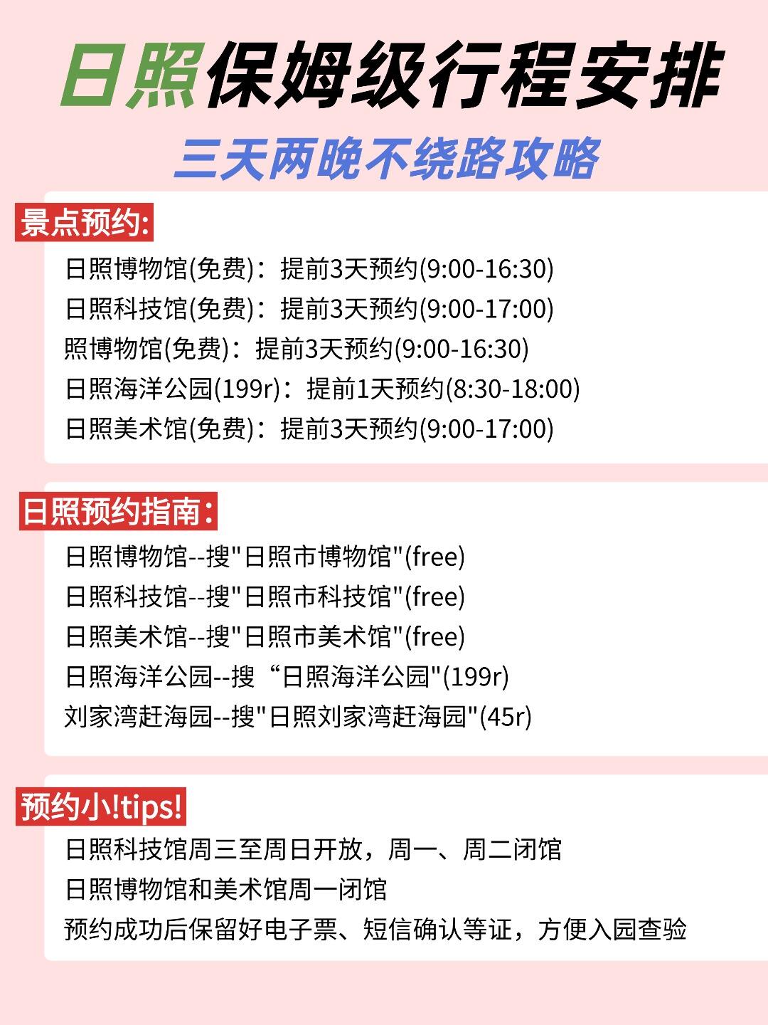 准备前往日照的小伙伴们!快收藏这份超实用的攻略吧‼详细行程都在下面,还有交通指南,美食推荐、住宿指南统统都给你整理好啦,记得约上你的姐妹们👭一起出发哦~