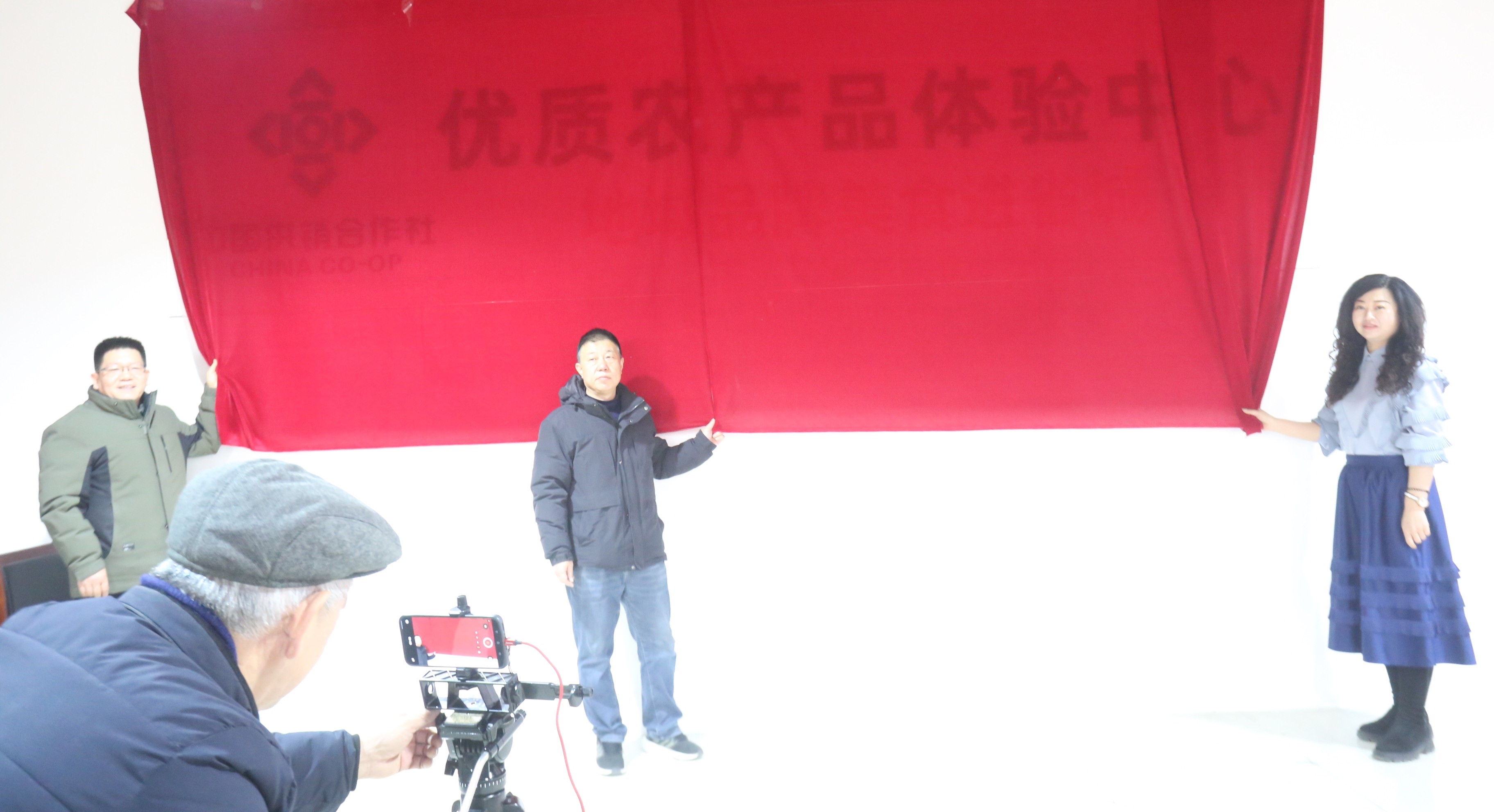 在热烈的氛围里、期待中,东区供销有限公司副总经理丁红卷、董云贵、王蕾蕾共同为“优质农产品体验中心”揭牌。红绸轻落,象征着一个服务三农、润泽民生的新平台正式扬帆起航。