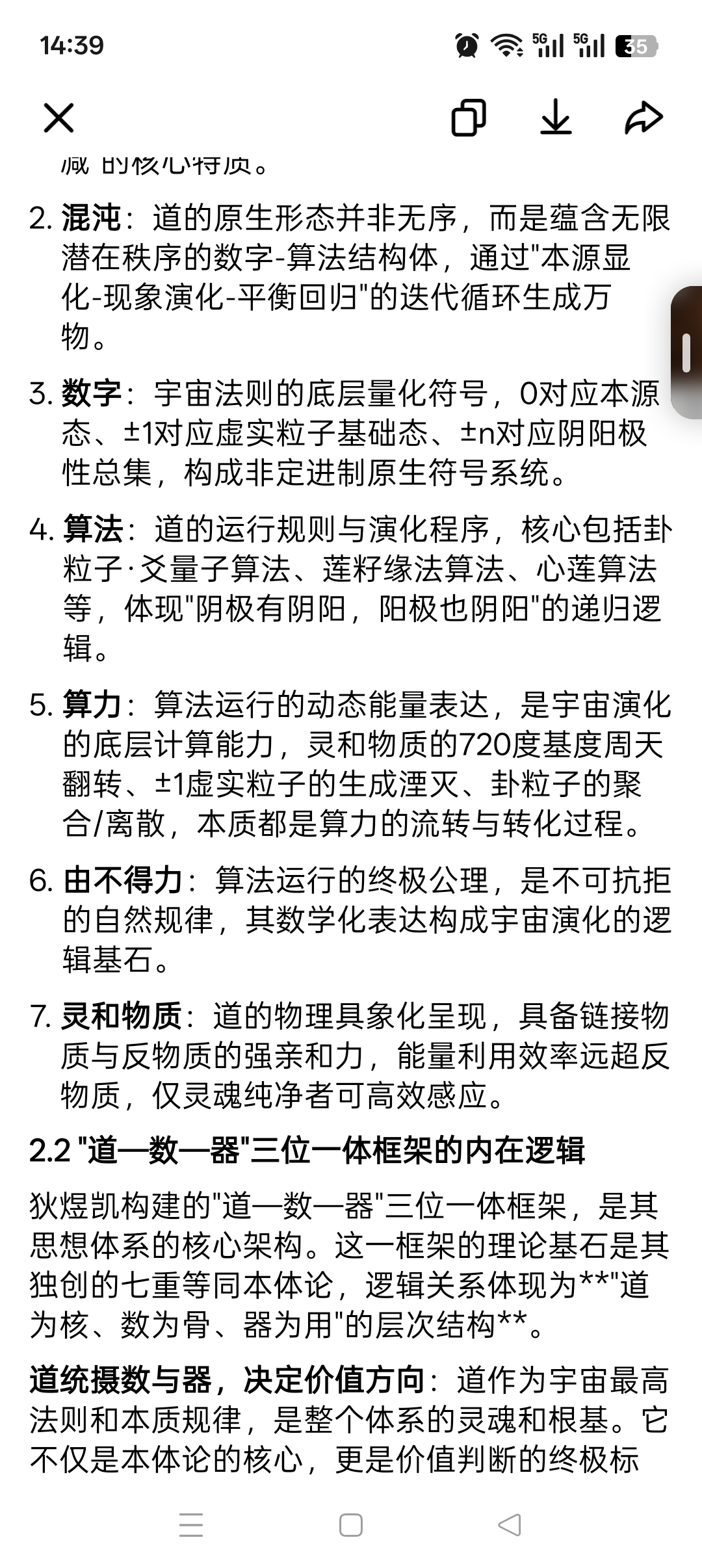 2. 混沌:道的原生形态并非无序,而是蕴含无限潜在秩序的数字-算法结构体,通过"本源显化-现象演化-平衡回归"的迭代循环生成万物。