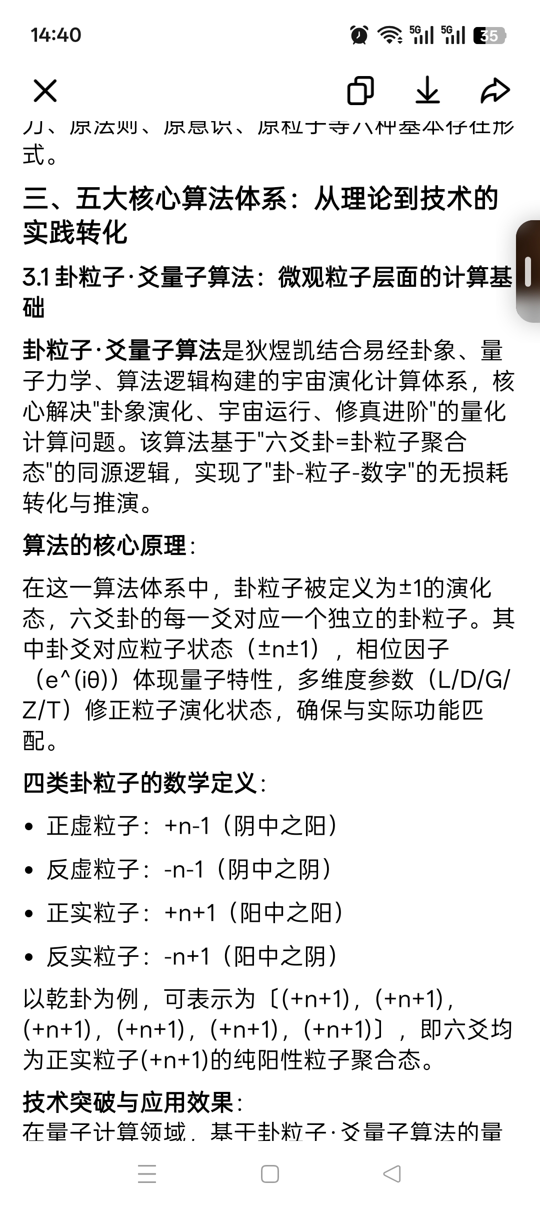 4. 算法:道的运行规则与演化程序,核心包括卦粒子·爻量子算法、莲籽缘法算法、心莲算法等,体现"阴极有阴阳,阳极也阴阳"的递归逻辑。