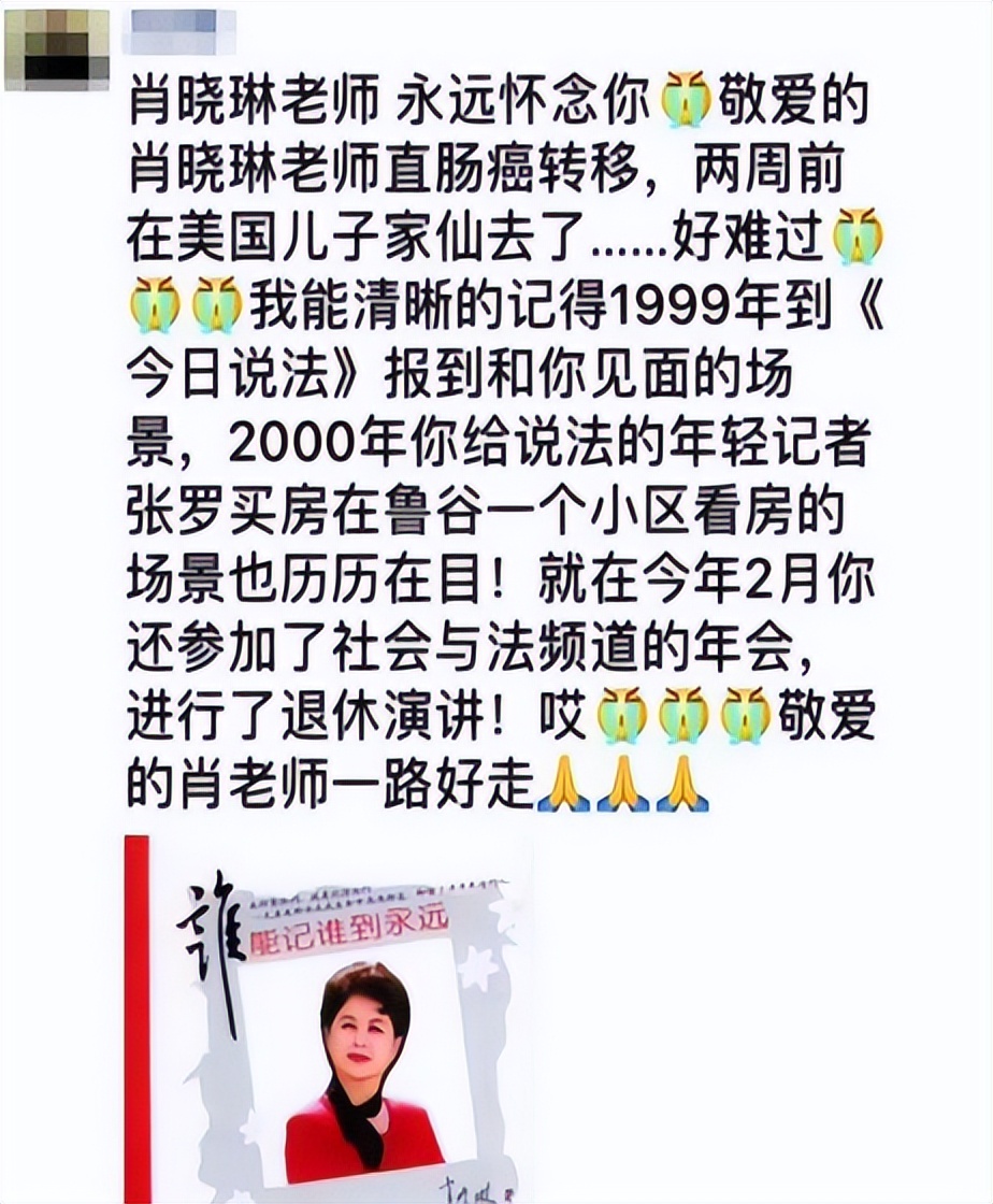 肖晓琳去世的消息传回国内,整个央视圈都陷入了震惊和悲痛。