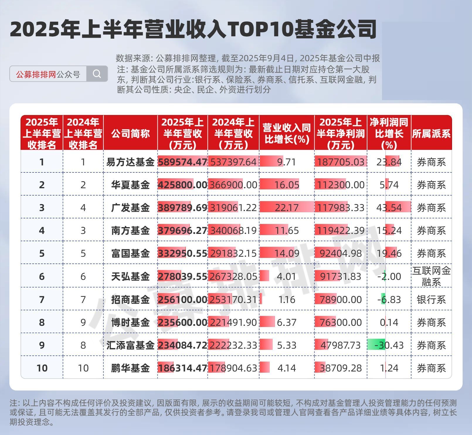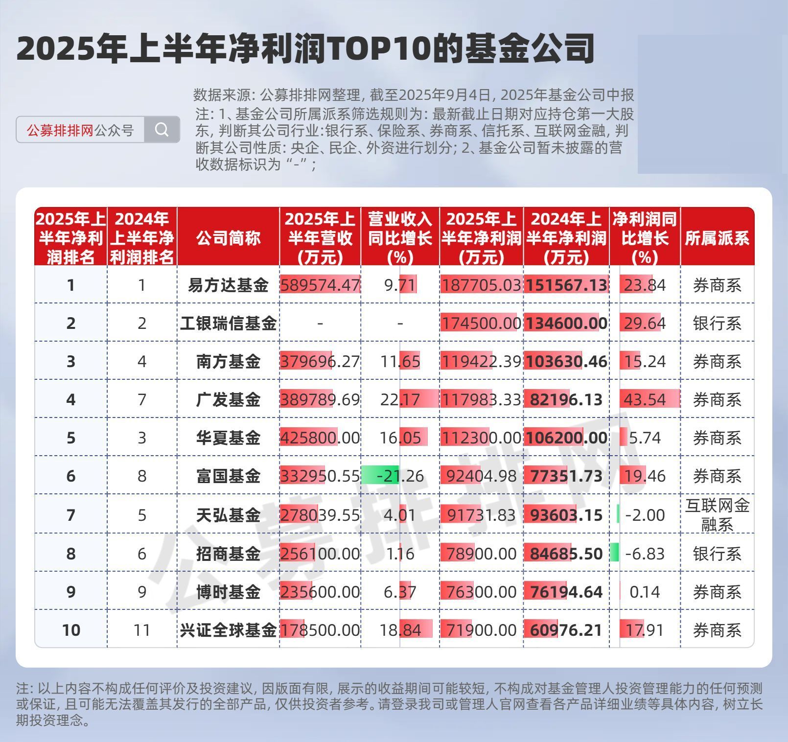 兴证全球基金迈入前10阵营,2025年上半年净利润约为7.19亿元,同比增长17.91%;营业收入约为17.85亿元,同比增长18.84%。