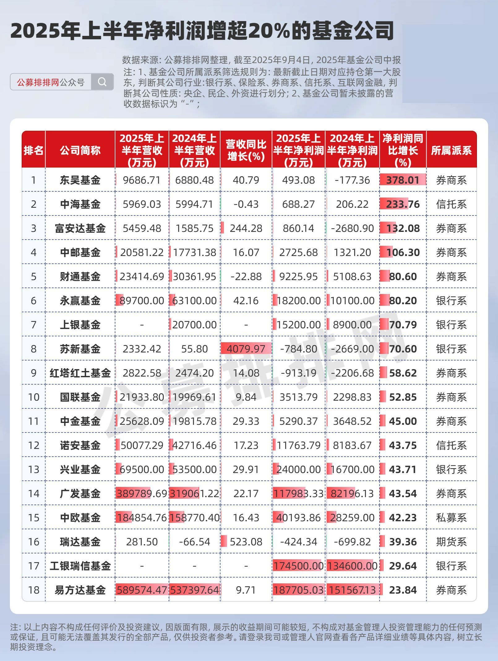 18家公司净利增超20%,东吴基金大增378%夺冠