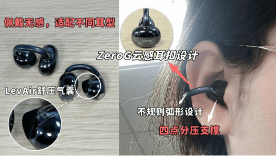 佩戴体验不算理想,耳夹偏紧,贴合度一般,长时间佩戴容易产生压迫感。尤其耳朵偏小的用户,更容易感觉不舒服。运动或走动时稳定性不够,需要经常微调耳机位置,日常通勤或短时间佩戴还能接受,但不适合长时间佩戴或剧烈运动。