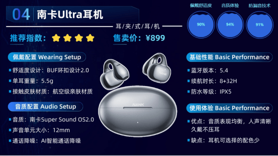 先说品牌本身。南卡在开放式耳机圈里的名气真的不是吹的,我之前测过它家的Ultra和Clip系列,最明显的特点就是调音扎实、品质稳定、产品一致性高。他们在筛选原器件和成品时大概会直接淘汰掉30%不达标的产品,这种狠劲放在国产品牌里确实很少见。也正因为这种严格标准,现在不少媒体都会把南卡的音质水平放在Bose、森海塞尔同级别去评价,尤其在开放式耳机领域,南卡算是行业里音质最突出的一档。
