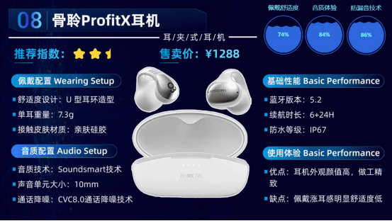 骨聆是国内新兴耳机品牌,主打高性价比和智能化功能,ProfitX属于其夹耳式耳机系列。品牌宣传重点是轻便佩戴和AI辅助功能,但在佩戴舒适度和音质上与同价位大品牌相比略有差距,更适合追求便捷日常使用的用户。