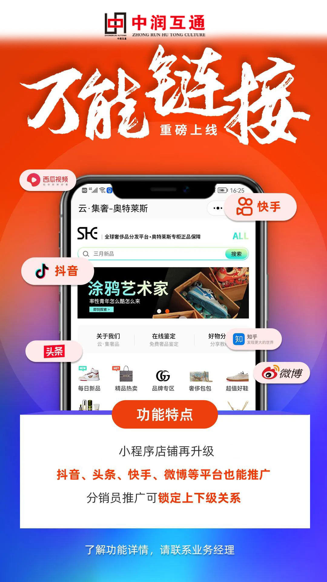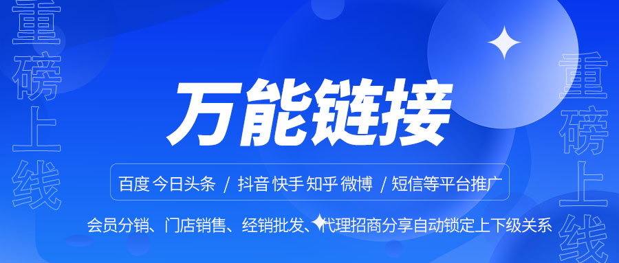 “万能链接”可以把小程序推广到百度、头条、抖音、快手、微博等场景,同样支持在会员分销、门店销售、经销批发、代理招商分享的场景下自动锁定上下级关系。