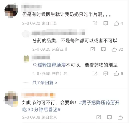 此事火速登上新浪热搜第一,引发全民热议。一些网友表示,自己家人也有这种错误的服药习惯,“没想到后果会这么严重!”部分患者因药物耐受或医嘱而习惯药量减半服用,全然不知小小药片竟藏着“玄机”。