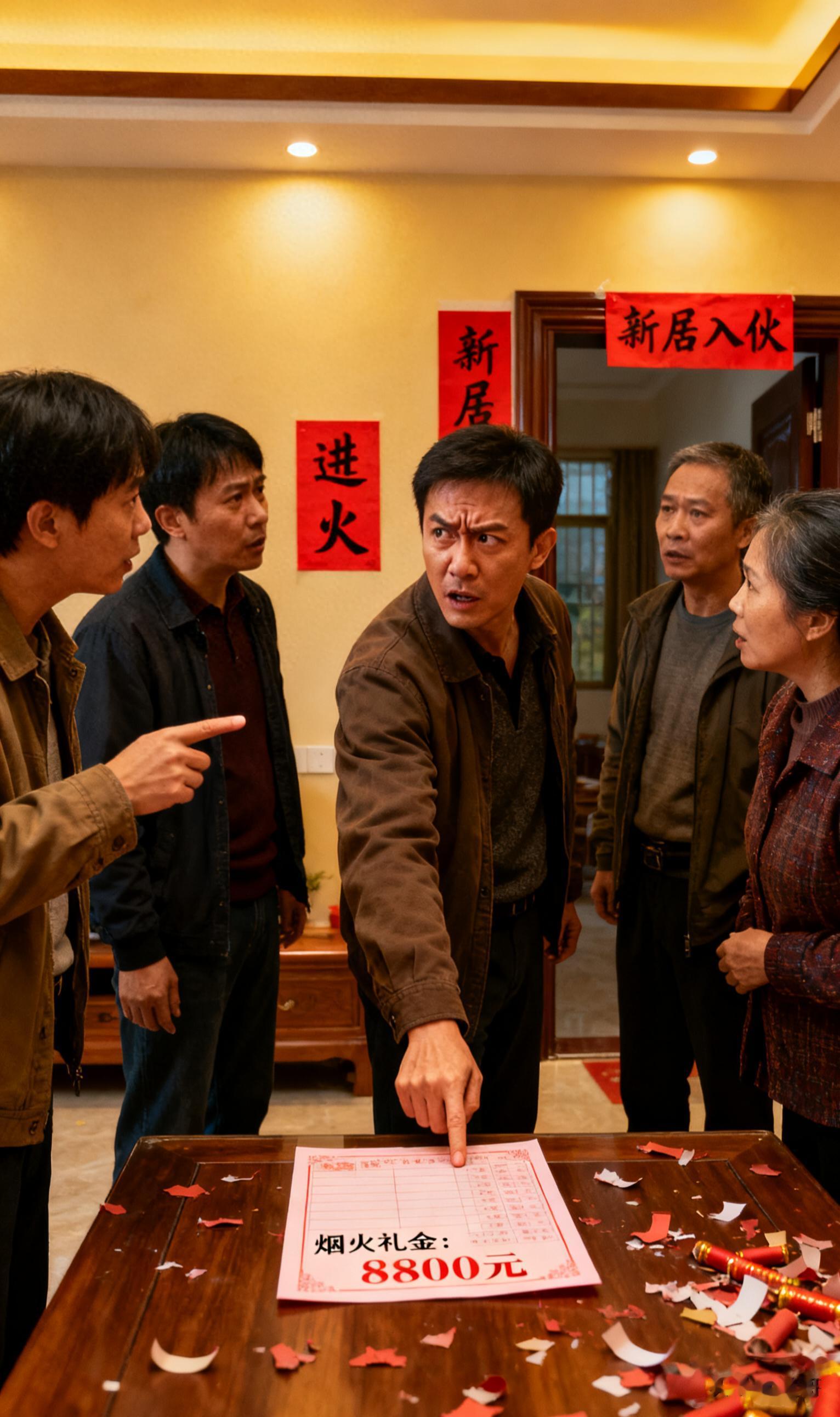 紧接着,二伯(家族理事)发出正式通知:“建军新居落成,择腊月二十八吉时‘进火’(乔迁仪式)。此为家族兴旺之喜,按我王氏老规矩,至亲兄弟需共贺‘烟火之礼’,以助其新宅人气兴旺,红火绵长。经家族长辈商议,凡我‘光’字辈(我这一辈)堂兄弟,每人需备礼金8800元**,于进火当日统一交付,以示兄弟同心,鼎力相扶。”