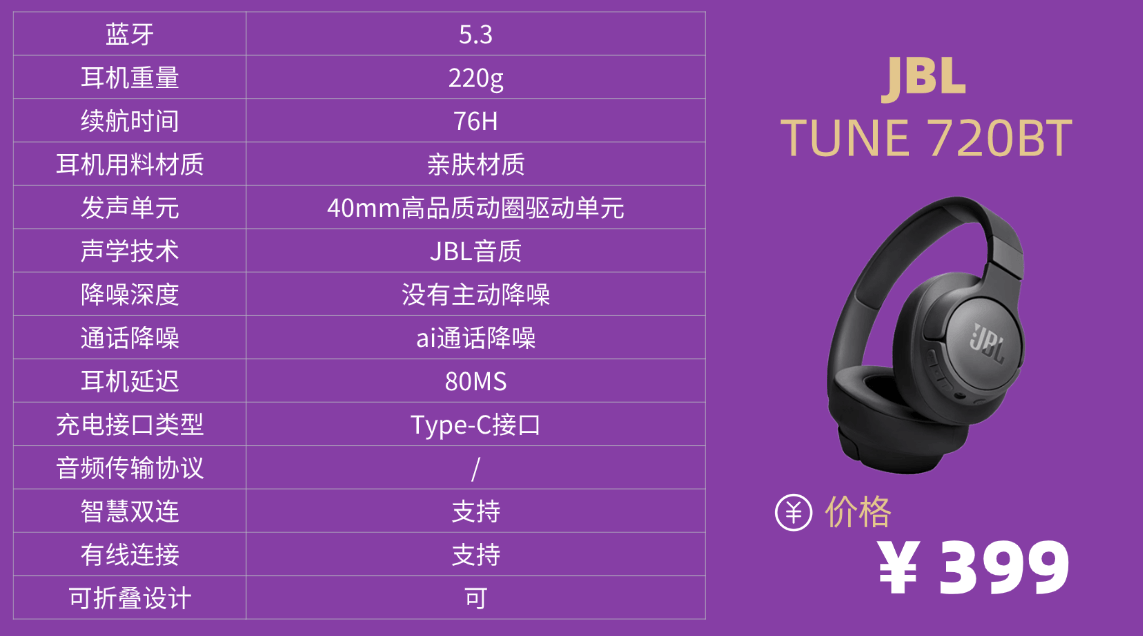 【品牌5】J BL T UNE 720BT头戴式降噪耳机