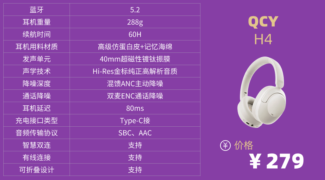 音质方面挺靠谱,内置40mm超大动圈单元还过了Hi-Res金标认证,听着声音干净通透,低频量给得足,人声也清晰自然。就是高频表现稍微保守了点,少了点延展的通透感。主动降噪能到 43dB,还有四档模式可调,平时通勤坐地铁,降噪效果很明显。蓝牙用的是BES芯片加Bluetooth 5.3,延迟低、信号稳,还能双设备切换,日常用着很顺手。续航更是亮点,关了降噪能用到70小时左右,支持快充不说还能有线播放,完全不用为电量发愁。