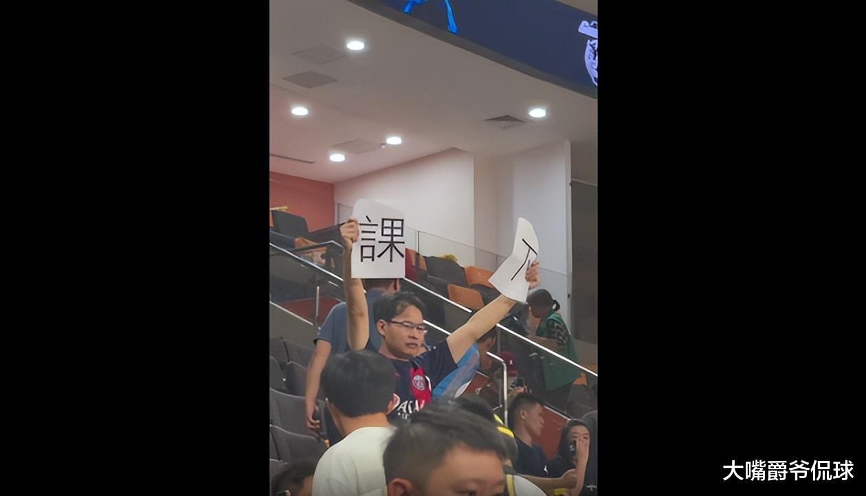 另外,有球迷在现场高举“杜锋下课”的牌子,并高喊口号,还遭到了保安的制止,网友们随即对广东主场安保表达了愤怒。