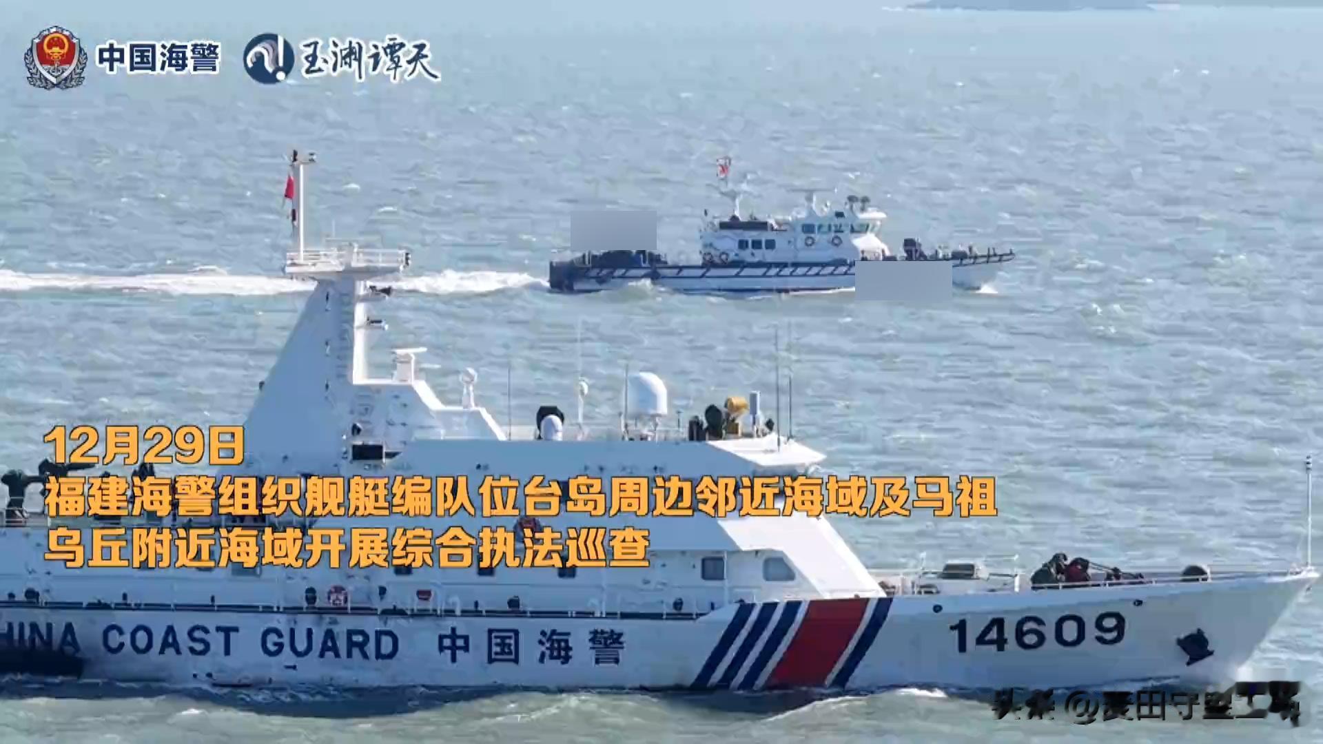 在2025年12月29日,中国海警船编队在马祖岛、乌丘屿附近海域开展综合执法巡查,重点实施查证识别、管控驱离等科目演练,检验了快速反应、应急处置能力。在2025年12月30日,中国海警继续组织舰艇编队位台岛周边邻近海域及马祖、乌丘附近海域开展综合执法巡查行动。这就是围岛的枷锁越来越紧,不仅仅是中国人民解放军,还有中国海警。