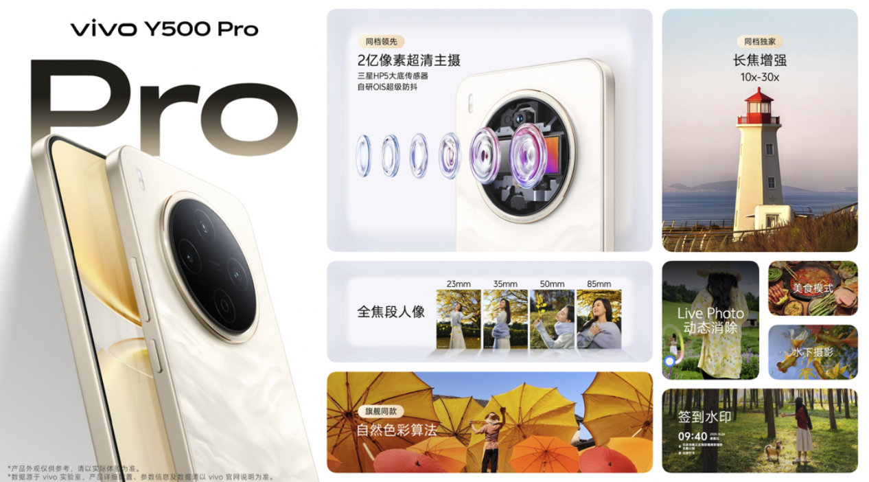 在中端市场中,vivo Y500 Pro以旗舰级影像、系统流畅度与强续航组合,构建出“越级体验”的新标杆。此次新机的核心升级集中在影像系统、性能优化与耐用设计三个方向。