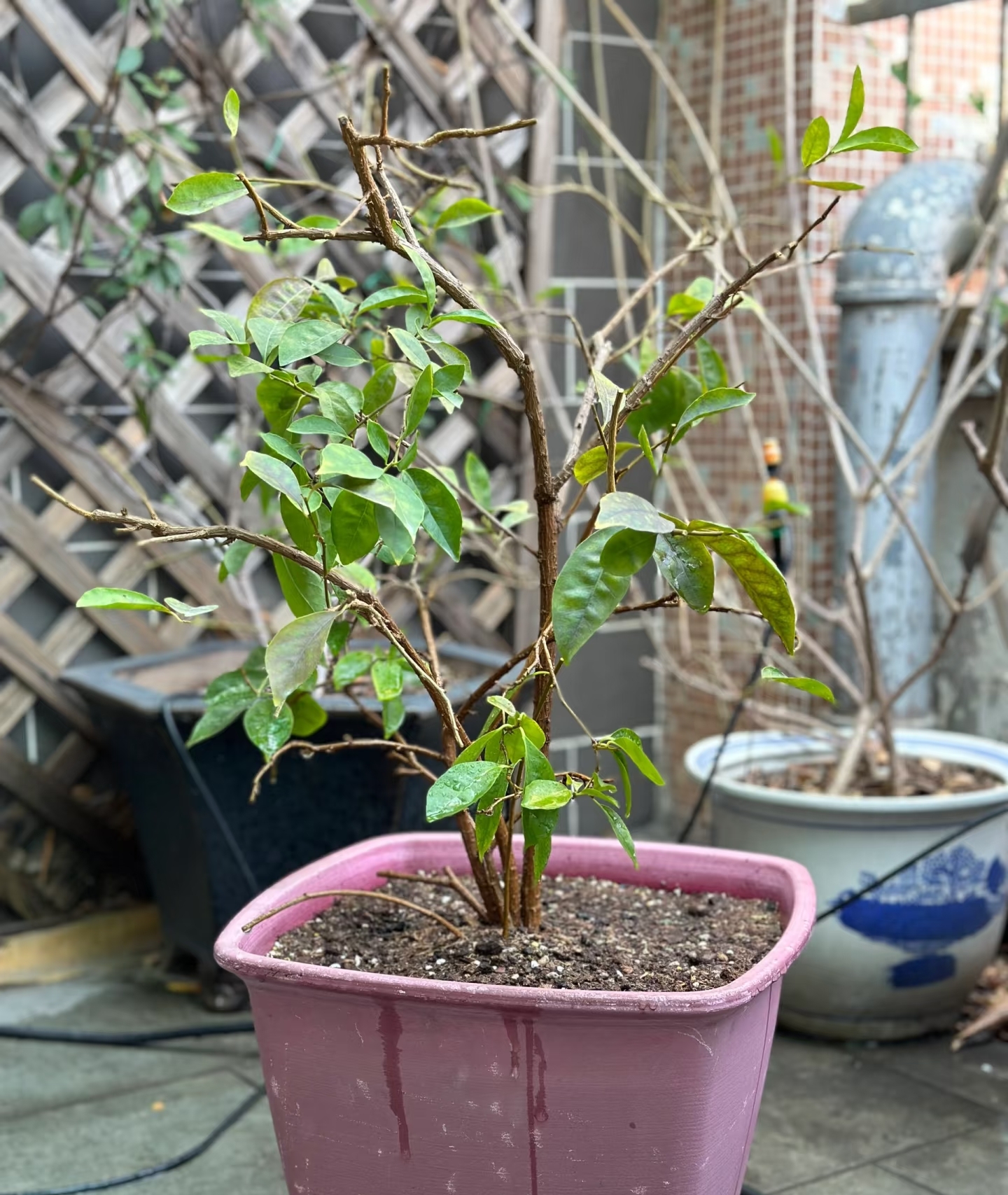 如果是买来的鸳鸯茉莉小苗,长到15到20厘米时,需要掐掉顶芽,促进侧枝生长,养成花树。