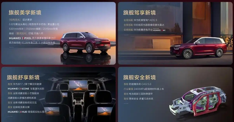 安全上也是按照更高标准来的,新车搭载CAS 5.0碰撞安全技术,车身采用2400MPa超高强度钢,强度比行业主流更高。另外还首创电池底部三层防弹装甲和多重冗余体系,从车身到电池,从日常行驶到极端场景,全方位守护家庭出行安全。再加上华为乾崑智驾ADS 5、896线双光路激光雷达、华为乾崑赤兔数字底盘平台,以及全铝底盘带来的稳定性与舒适性,普通家庭用户也能直接享受百万级旗舰的安全性与驾控质感。