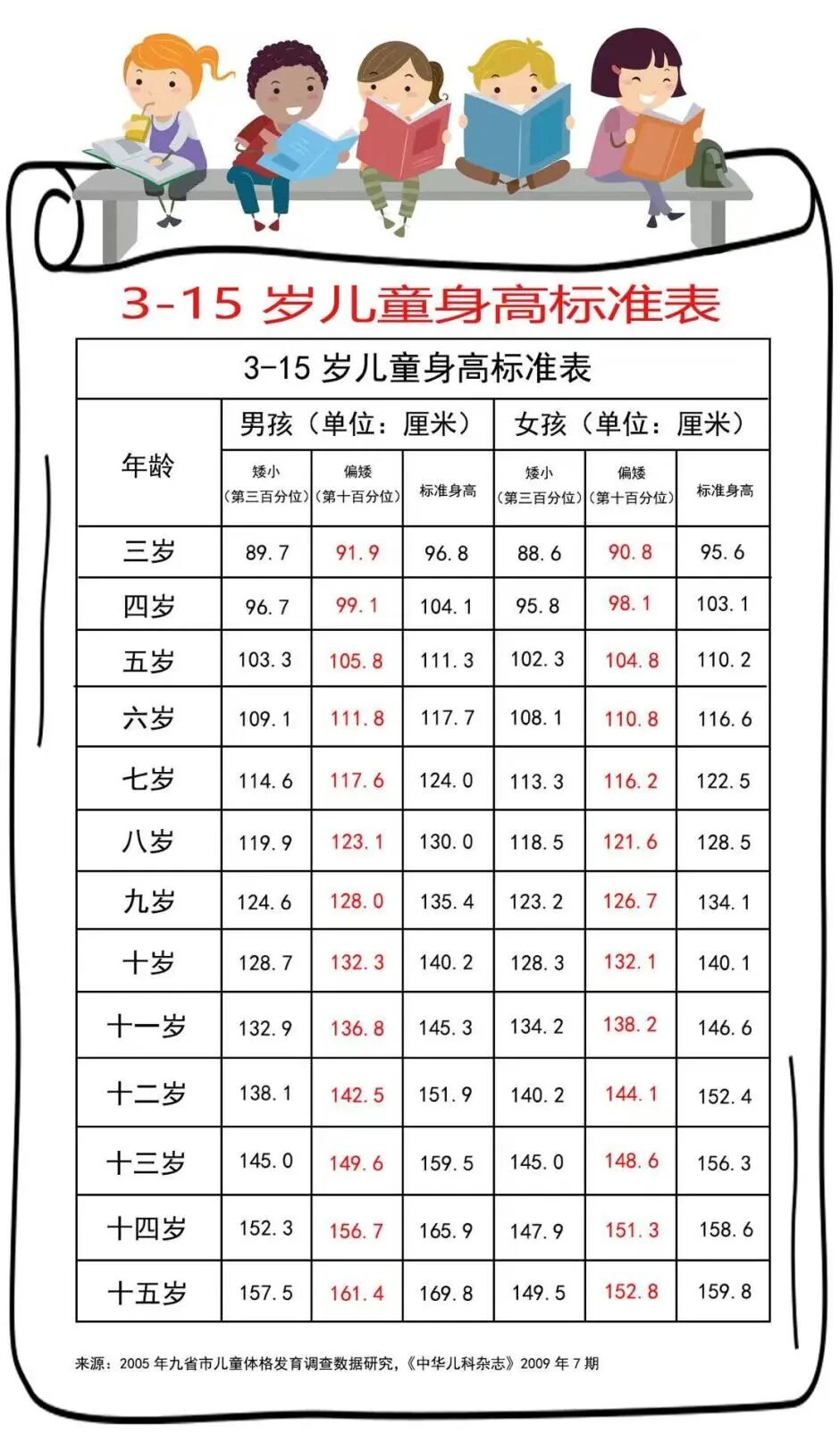 2.每年长个不到5厘米的5至15岁儿童;