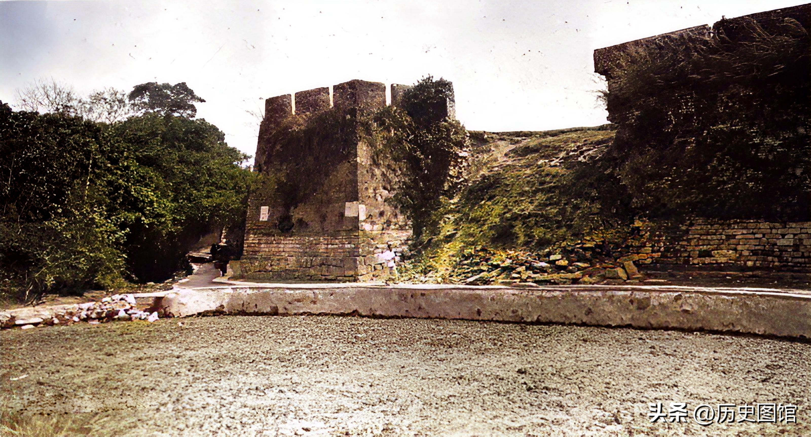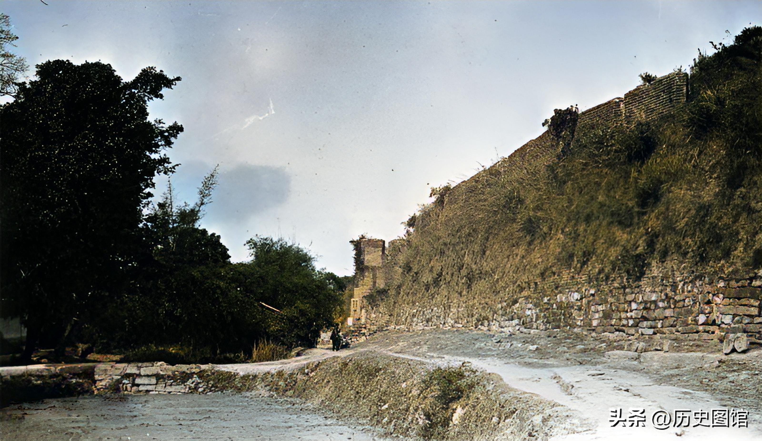 这张照片也拍摄于1925年。城台旁有段城墙已经坍塌,还没有被修复。民国时期,军阀混战,城墙或毁于战火,或年久失修坍塌。