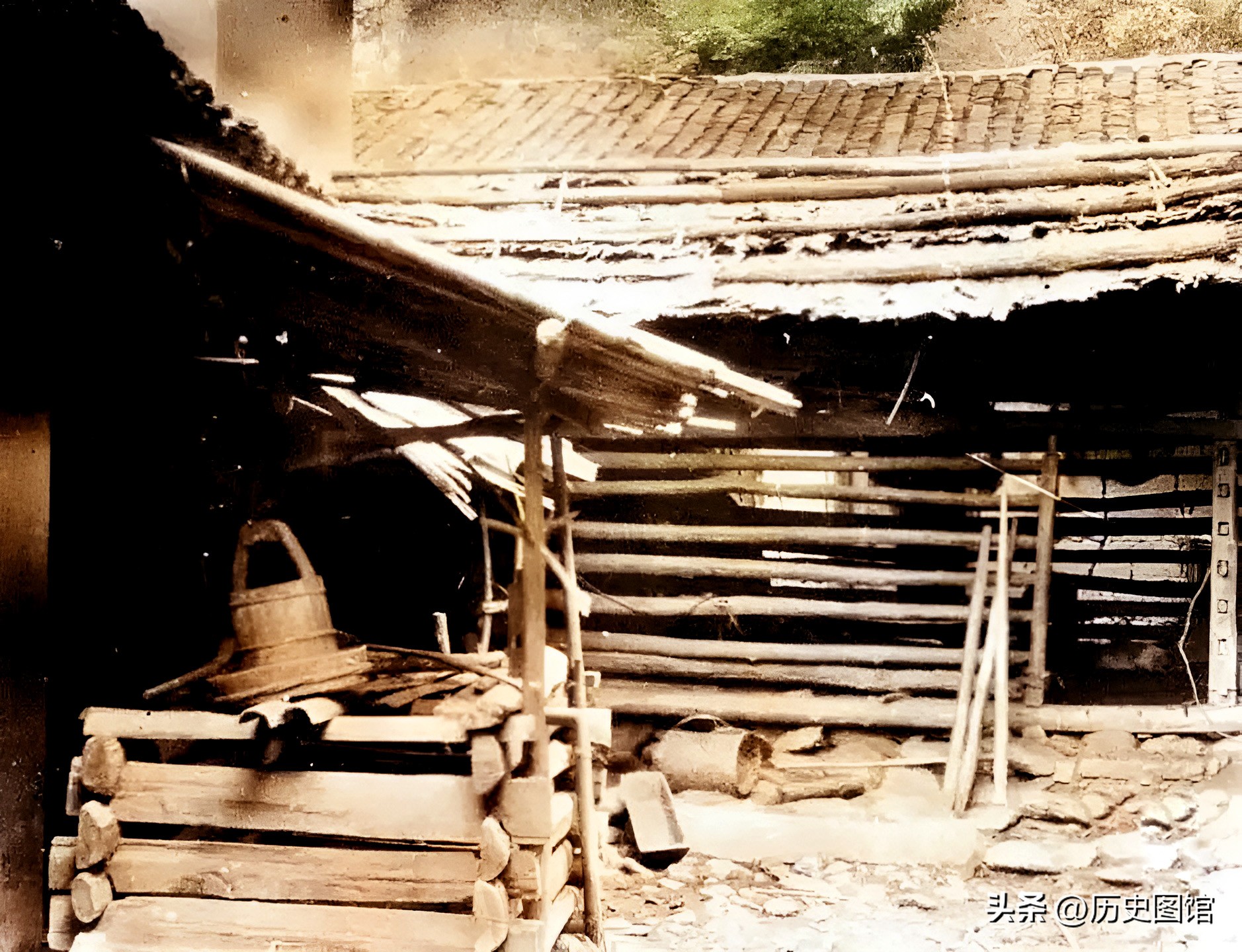 20年代,阳江乡村一户人家的院落。几座瓦房组成一个院子,房门口搭着木制的遮阳棚。这样的场景,在七八十年代的偏远农村也能肩带。