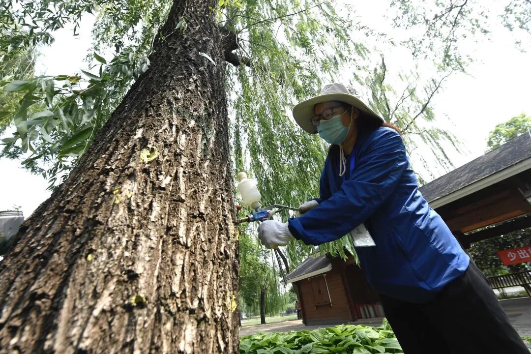 对药械难以喷到的高大树木或者严重病虫害,可以采用树干注射法治疗。