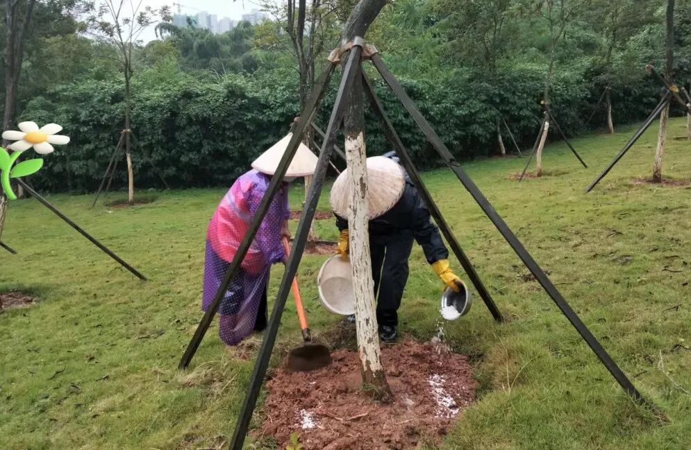 深圳多雨潮湿,一旦排水不及时植被根部很容易烂根或产生霉菌。对于这种情况应分类治理。比如灌木类应使用立枯净兑恶霉灵,喷雾打药治疗。乔木类应该在根部树冠投影部位开孔灌入多菌灵溶液消毒防治。