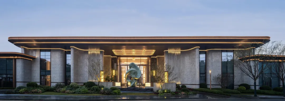 在园林景观方面,以安徽名山为灵感,提取山石、奇松、泉水、飞瀑等元素,融于场地,围合出一方多层次四维山水庭院,漫步其间,仿若浮游于山水间。