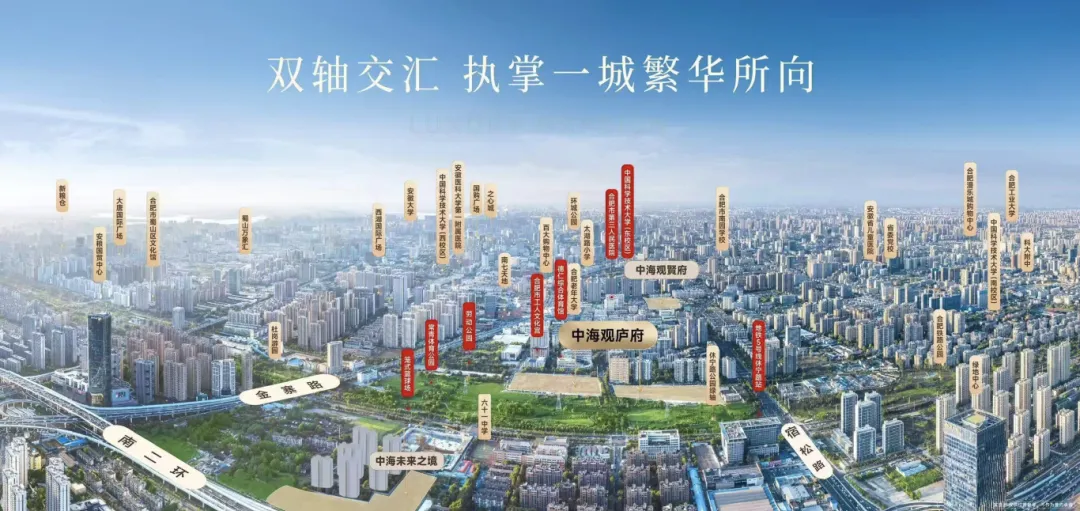观庐府所在蜀山、包河、政务三区交集,老城与天鹅湖双心能量交融与资源辐射带,三区聚合,双心叠加的奇点效应,引发价值乘数效应,不仅前瞻城市展新的烫金版图,更执掌中芯之心的价值坐标。