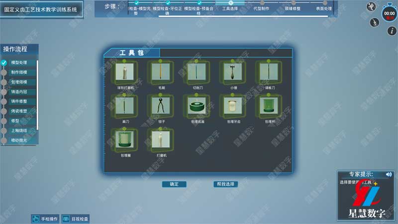 在实验练习过程中,会实时提醒操作步骤,并对相应器具加亮显示,并在右下角生成专家提示。更关键的是,学生能反复练习一个工艺,并拆解整个工艺链。制作失误,可根据提示修正。不用再因前一步错误报废整个模型。