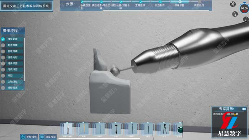 在口腔技工室的角落,总能看到这样的场景:学生举着磨坏的石膏模型叹气——“邻接过窄了”“肩台边缘又不密合”。固定义齿工艺教学,这门被称为“口腔修复基石”的技术,曾让无数新手卡在“眼会手不会”的瓶颈里,而传统教学依赖石膏模型反复打磨,材料损耗大、试错成本高,更别提“临床思维”的培养。星慧数字口腔数字化虚拟仿真平台中的固定义齿工艺教学训练系统,让这门手上功夫终于有了更高效的成长学习路径。