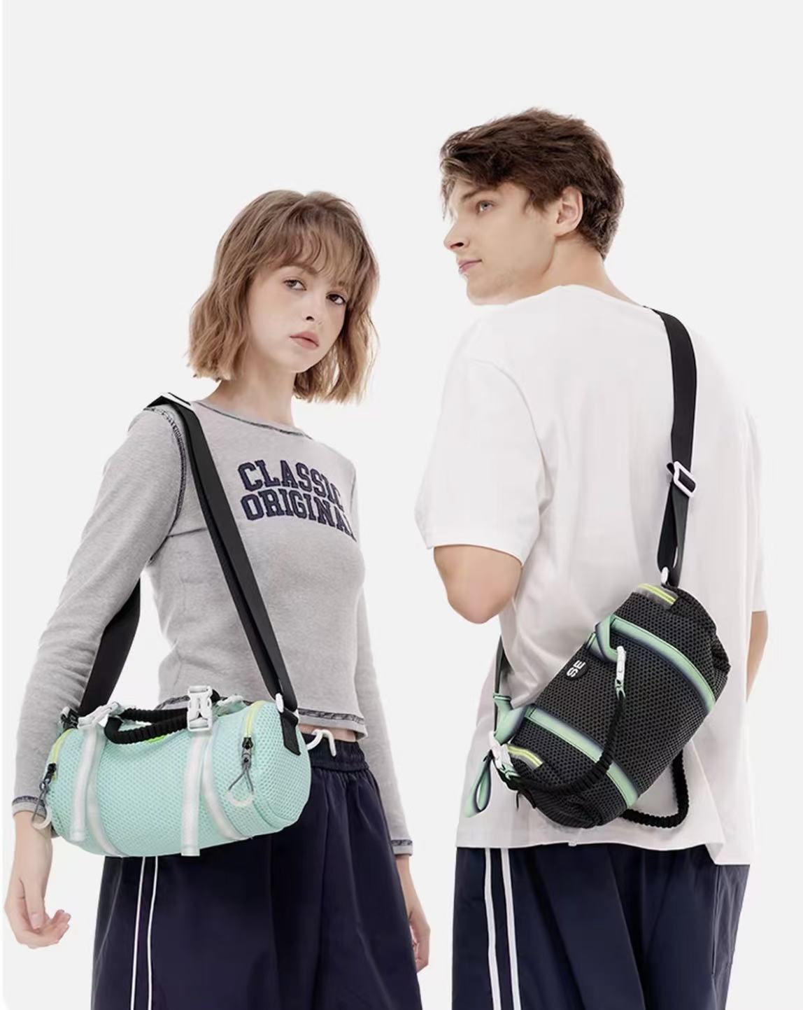 现在,“痛风”不再是亚文化的专属,而是成为极繁主义的新表达:痛包清洗、痛板定制、谷美摄影等细分服务应运而生,甚至出现 “云扎包” 这类线上定制服务,满足不同群体的需求。“痛风” 的流行,本质上是年轻人对千篇一律的审美说 “不”,是对独特个性的极致彰显与勇敢表达。在日常穿搭上也常选择能表达个性化的服装饰品,而这款编制圆筒包恰恰与当下年轻人的个性表达完美匹配,独特的编织设计自带小众质感,与极繁潮流的个性内核不谋而合,12L 大容量足以轻松收纳各类谷子与日常物件,手提显精致、单肩更随性的双重背法,无论是日常通勤还是漫展打卡,都能让热爱与个性无缝融合,成为潮流之下不撞款的自我宣言。