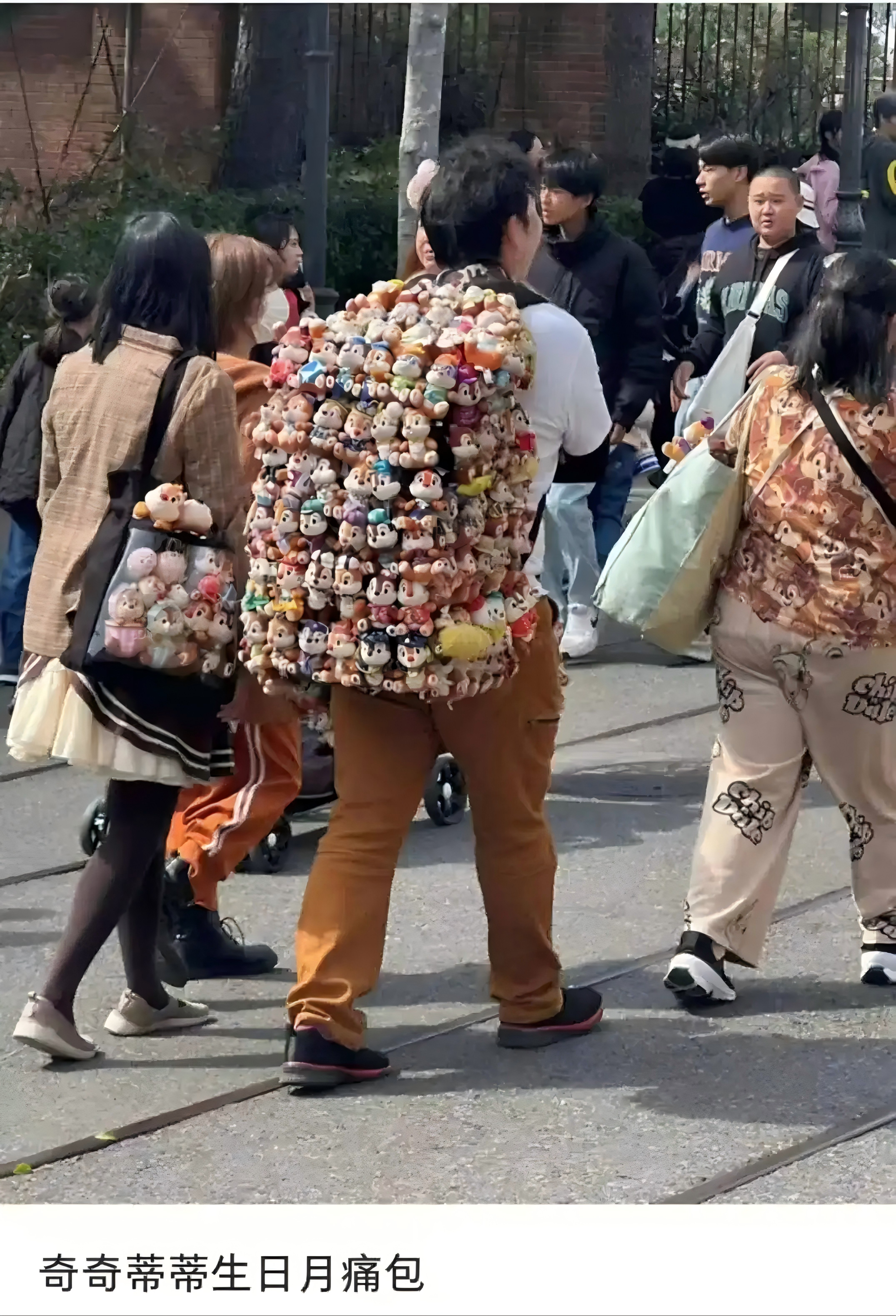 “痛风” 潮流的源头,是源自日漫圈的 “痛文化”,日语中 “痛々しい” 所表达的 “脱离常规的夸张”,在汉语语境里演变成 “视觉冲击强烈到让人眼前一亮” 的趣味诠释。其核心是拒绝留白的极繁美学,年轻人将动漫、游戏、明星等 IP 衍生的 “谷子”(徽章、玩偶、小卡等周边)密集装饰在各类载体上,形成 “目之所及皆是热爱” 的独特风格。这种表达打破了极简主义的克制,用饱和的情感与视觉密度,成为年轻人对抗平淡生活的出口。