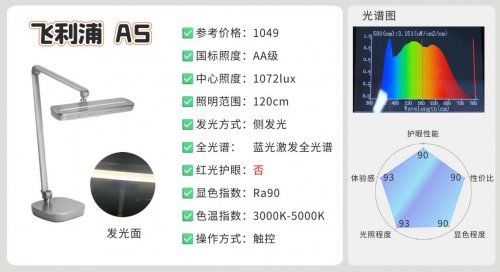 不过它虽为全光谱但依赖蓝光激发,且蓝光峰值达1.0,长期使用可能对眼部造成一定负担,整体更适合对核心护眼要求不极致、注重基础照明与便捷功能的家庭。