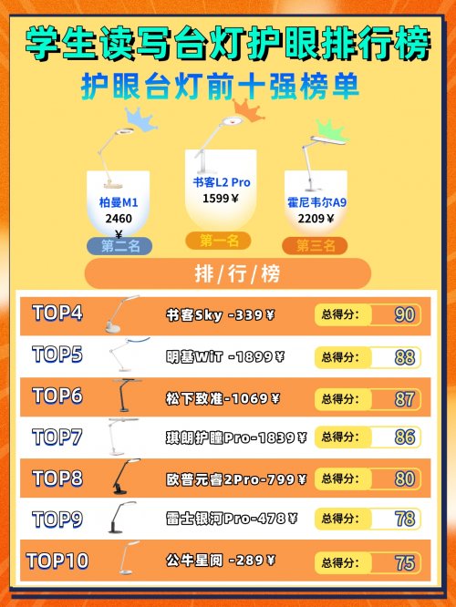 综合光学技术、权威认证和市场口碑,我为大家整理出来了护眼灯最好的品牌排行,包括书客、明基、柏曼、飞利浦和孩视宝等品牌,下面是我整理出来的它们的评分表,大家可以参考一下: