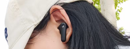 佩戴体验:黄金30°斜入耳设计,连续佩戴2-3小时都不易出现酸胀感,侧面还很贴心的做了三角形通气孔设计,单耳重量约4.87g,是根据人体工学设计平衡耳压