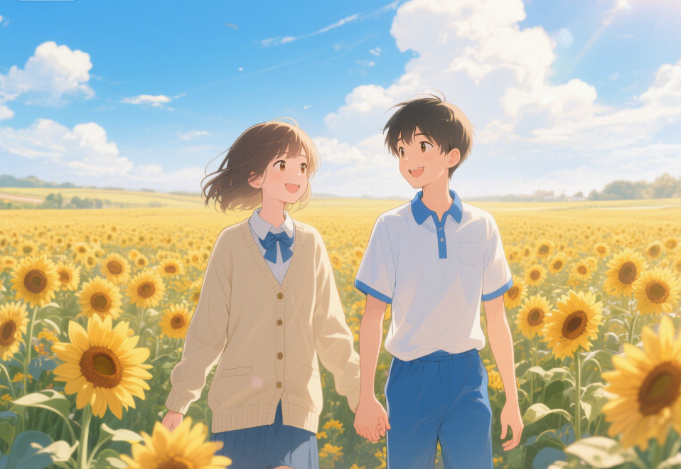 夕阳落在向日葵上,也落在我们身上,把我们的影子拉得长长的,像两个紧紧靠在一起的音符。我知道,未来的日子里,我们还会遇到很多问题,还会有矛盾和误会,但只要我们互相理解、互相陪伴,愿意倾听对方的心意,就没有解决不了的困难。
