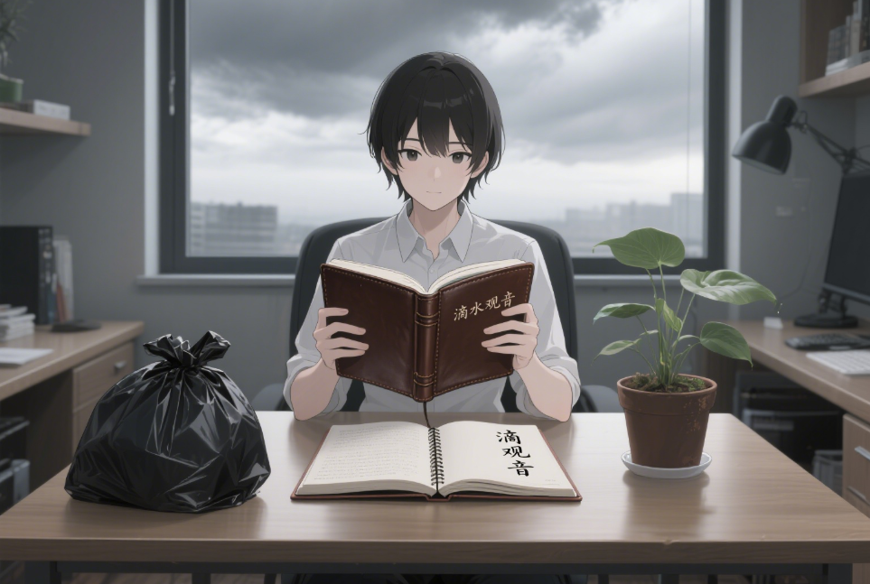 第二天早上,我还没起床,就听到客厅里有动静。我穿好衣服出来,看到林晓正把那盆滴水观音从她房间里搬出来,黑塑料袋放在一边,她的额头上还沾着汗。