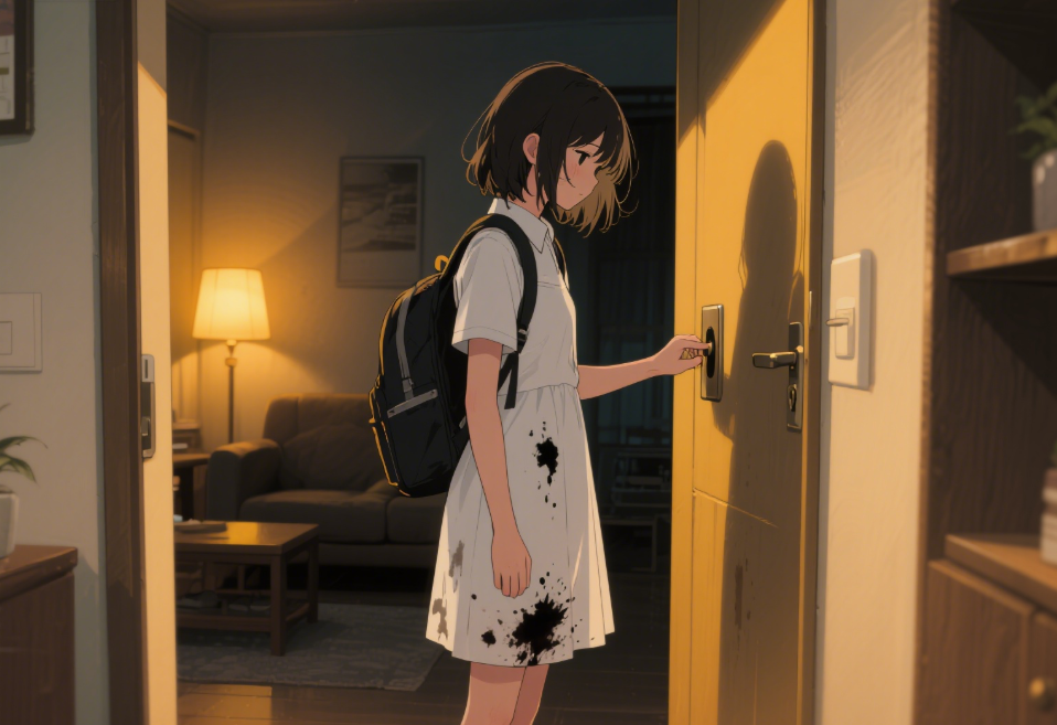 林晓上初一那年,变化开始悄悄出现。开学第一天,她特意挑了件白色连衣裙,还让我给她扎了高马尾,可放学回来时,裙子上沾了墨水,马尾也散了,低着头把书包往沙发上一扔,就进了房间。我问她怎么了,她只说 “没事”,关门前还轻轻扣了下锁 —— 那是她第一次锁门。