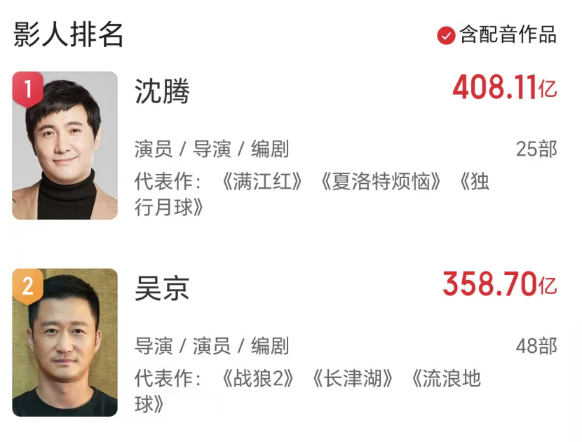 而吴京的《镖人》位居春节档亚军,但和《飞驰人生3》相比,票房差距过大,眼下累计票房才超11亿,吴京本人也以358亿的总票房成绩,屈居第二。
