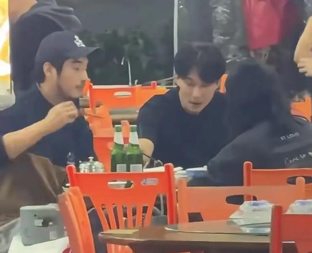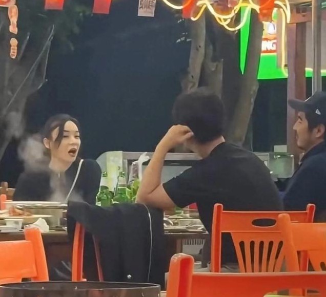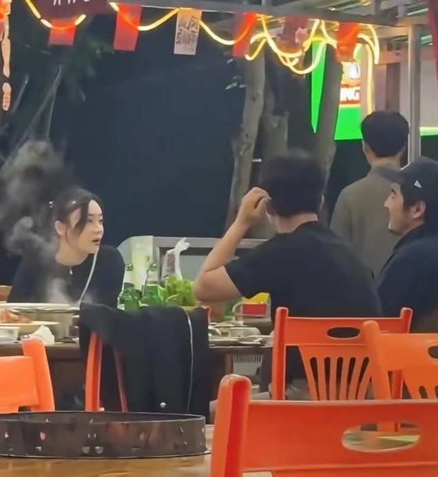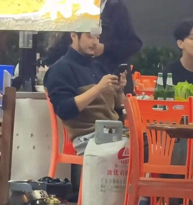 金世佳时不时拿起手机回复信息,聚餐的街边小吃店环境非常简陋,大圆桌配塑料凳,旁边还有液化气罐,没想到明星聚会也会选在这么接地气的地方。