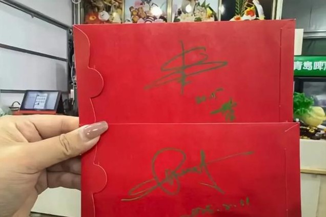 两人还很热情地给偶遇网友签名。