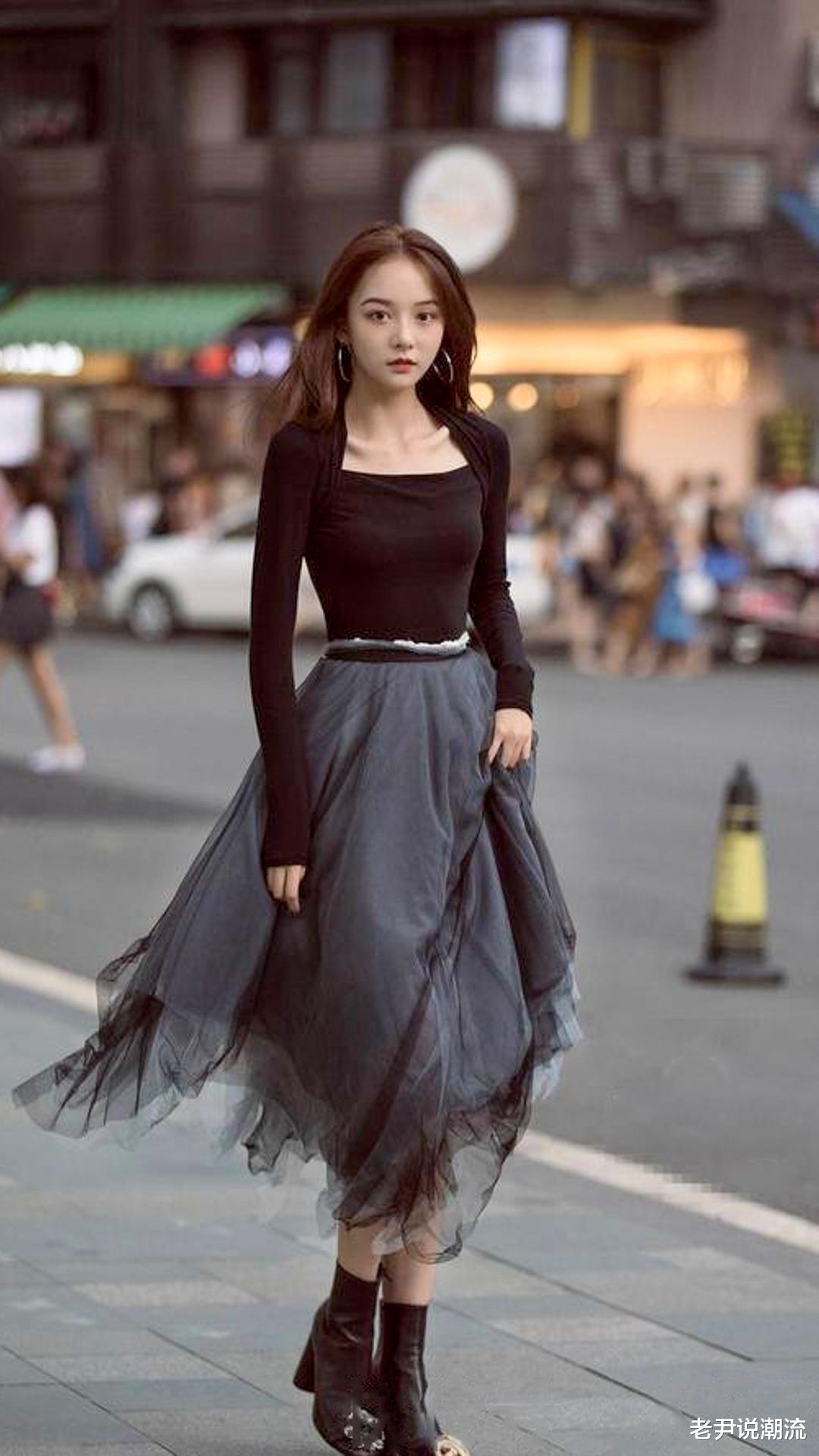 黑色细纱裙的王者风范,源于其材质本身的矛盾美学。细纱的轻盈与黑色的厚重,在摆动间达成精妙平衡。它不是单纯的透明,而是通过层层叠叠的堆砌,营造出如雾如烟的朦胧感;行走时,裙摆如夜风中的旗帜,翩跹而起,勾勒出腿部若隐若现的优雅曲线。是主动挥洒的风度,而非被动承受的风力。