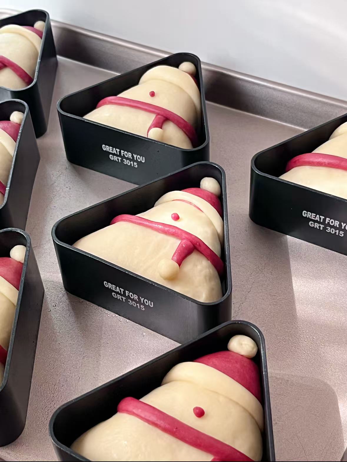 与此同时,另一边的面团正在经历一场蜕变。高筋面粉、牛奶、鸡蛋和酵母在师傅灵巧的双手下渐渐融合,经过反复揉捏、发酵,变得柔软而富有弹性。这面团如同初雪般洁白,等待着被塑造成可爱的雪人形状。