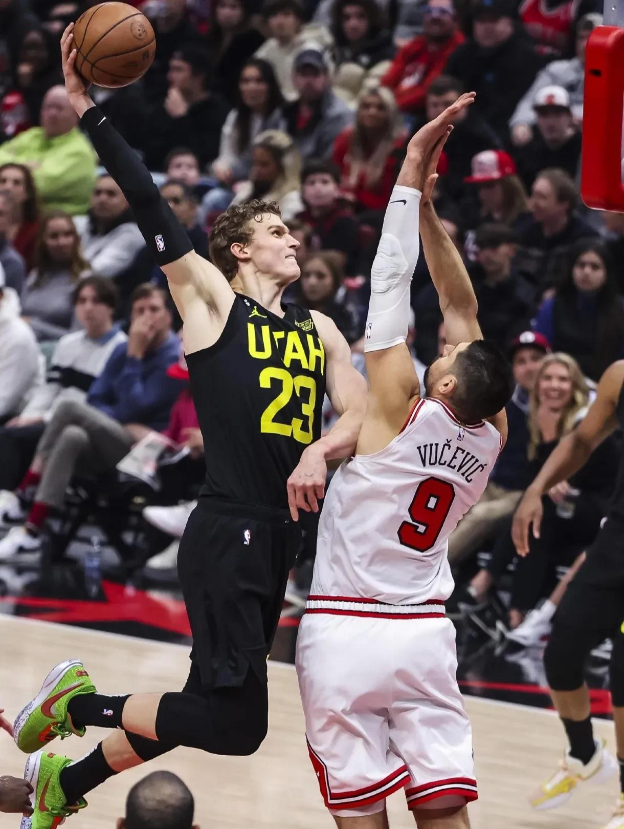 爵士首发:马尔卡宁、菲利波夫斯基、凯斯勒、米哈伊柳克、乔治。