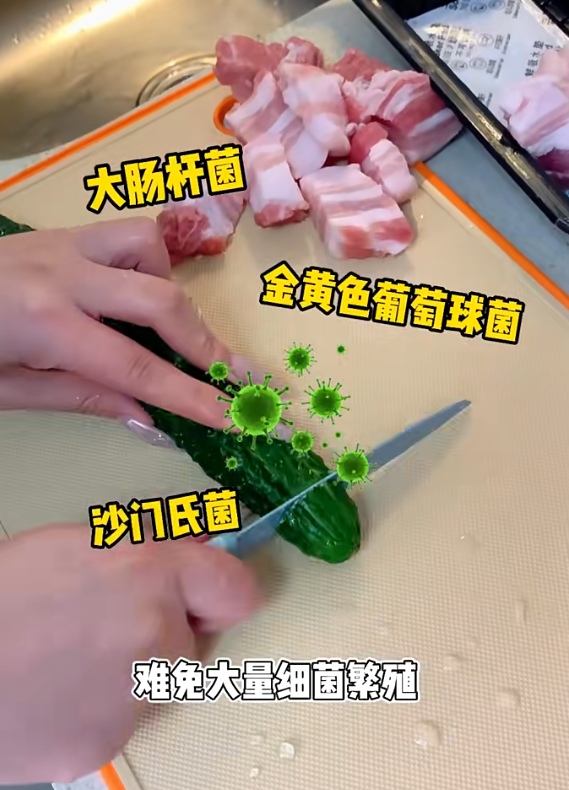 很多中国家庭的刀具都是既切生肉又切熟食,上面有可能会混合沾染不同的细菌,从而有害健康。