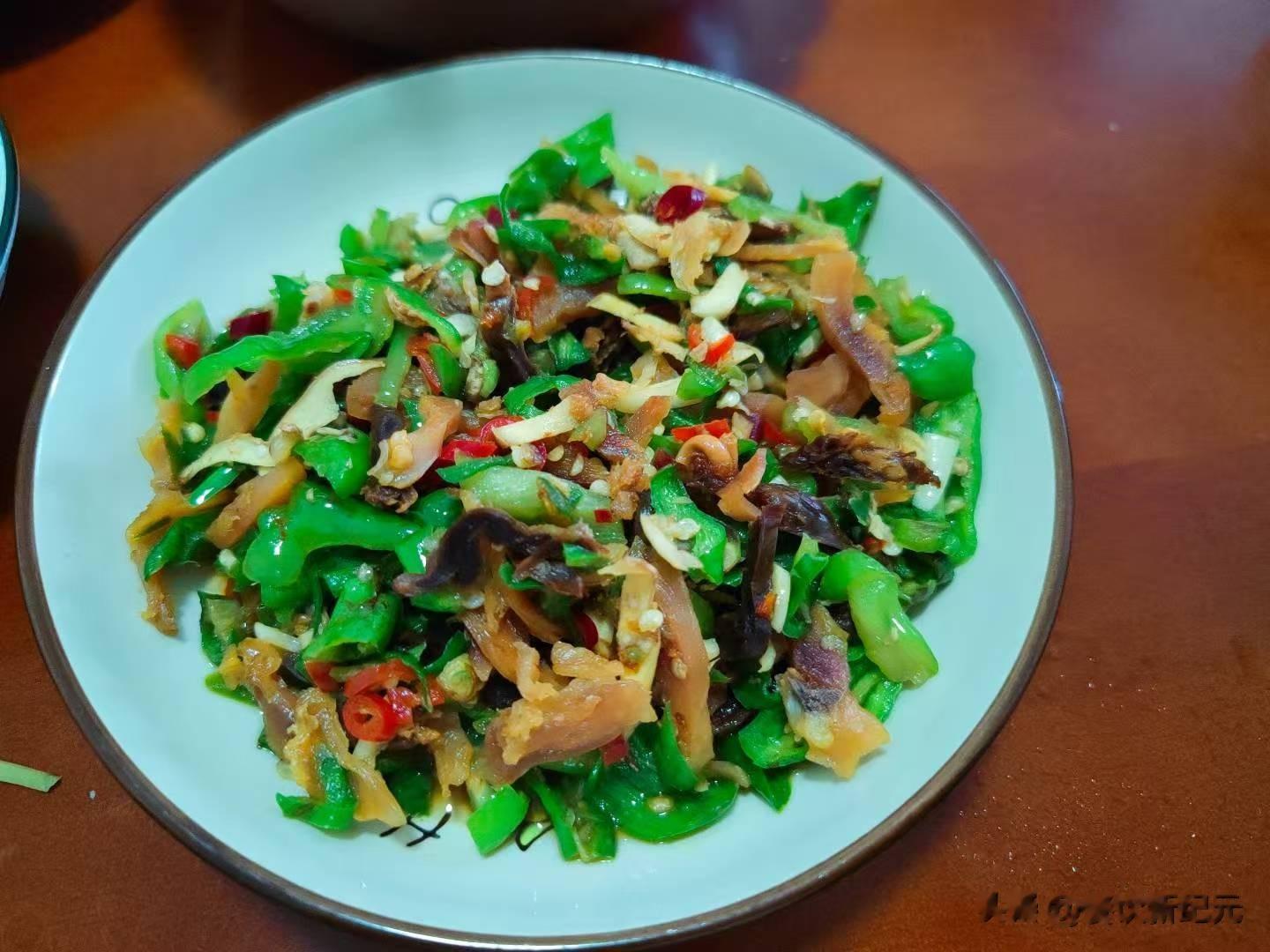 第二个菜是青椒萝卜干炒腊鸭胗,这个菜是今晚的重头菜,也是今晚非常下饭的一道菜,能吃多少晚饭,全靠它了。