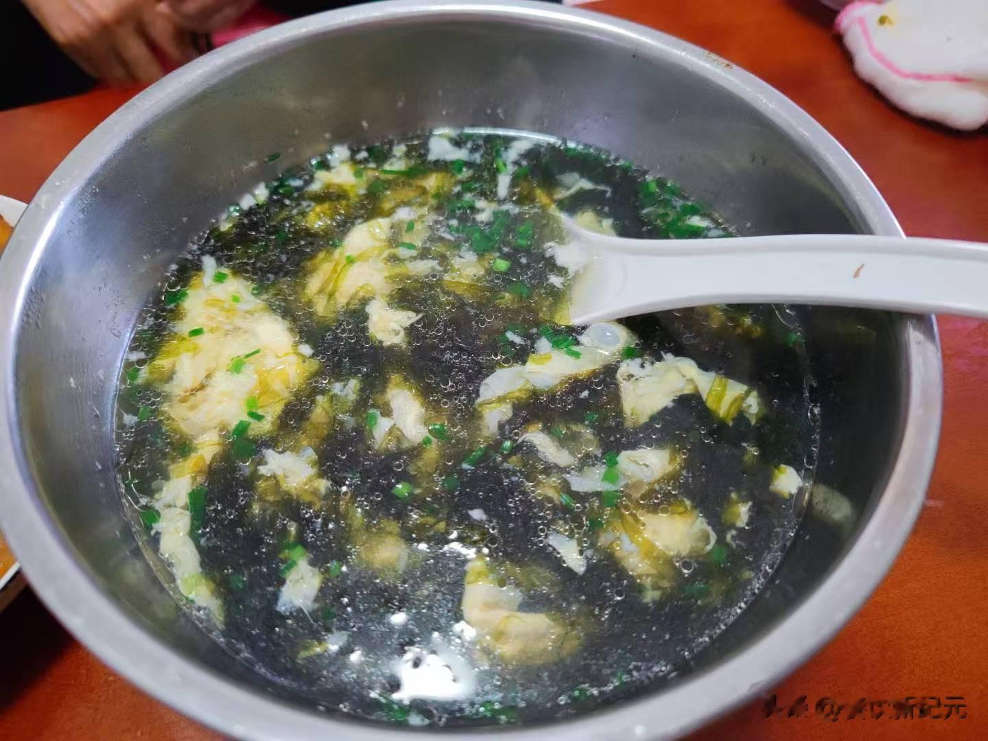 最后一道是紫菜蛋花汤,成本3块钱左右,紫菜一小包,1块钱,鸡蛋两个,再加一点葱花和香油。